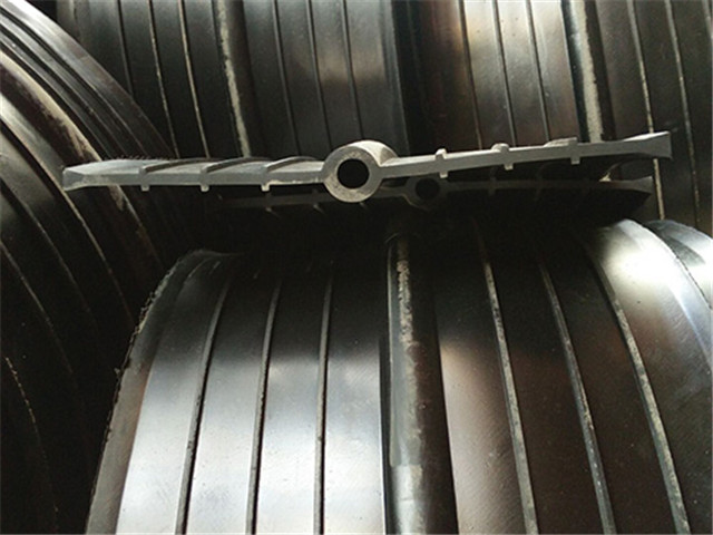 橡胶止水带是在混凝土浇注过程中部分或全部浇埋在混凝土中。由于混凝土中有许多尖角的石子和锐利的钢筋,所以在止水带定位和混凝土浇捣过程中,应注意安装定位方法和浇捣压力,以避免止水带被刺破。由于塑料和橡胶的抗断撕裂强度比拉伸强度低3-5倍,所以如果橡 胶止水带被刺破将会大幅度降低产品抵抗外力的能力。